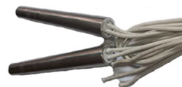 Composed of a nichrome resistance coil housed in a ceramic body of high dielectric insulation and excellent thermal conductivity, the remaining spaces are covered with granular refractory insulation.